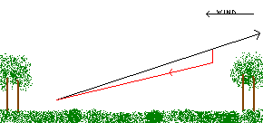 The figure to the left depicts the safest departure technique when steady but slow airspeed is used and steady and constant power is applied. The helicopter should be flown on a path which will safely clear the obstacle and also that which will allow a stop safely short of the obstacle if the obstacle can not be cleared. The pilot must also keep in mind that there may be a down-flow of air near the obstacle which must be avoided.