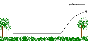 The figure to the left depicts the safest departure technique when steady but slow airspeed is used and steady and constant power is applied. The helicopter should be flown on a path which will safely clear the obstacle and also that which will allow a stop safely short of the obstacle if the obstacle can not be cleared. The pilot must also keep in mind that there may be a down-flow of air near the obstacle which must be avoided.