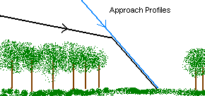 This figure depicts two different approach profiles either of which is acceptable. Neither has a significant advantage over the other however the difference is that following the blue line you will spend a longer time deeper in the HV curve while along the black line although you will not be as deep in the HV curve, if you loose your engine you will be snacking on trees.